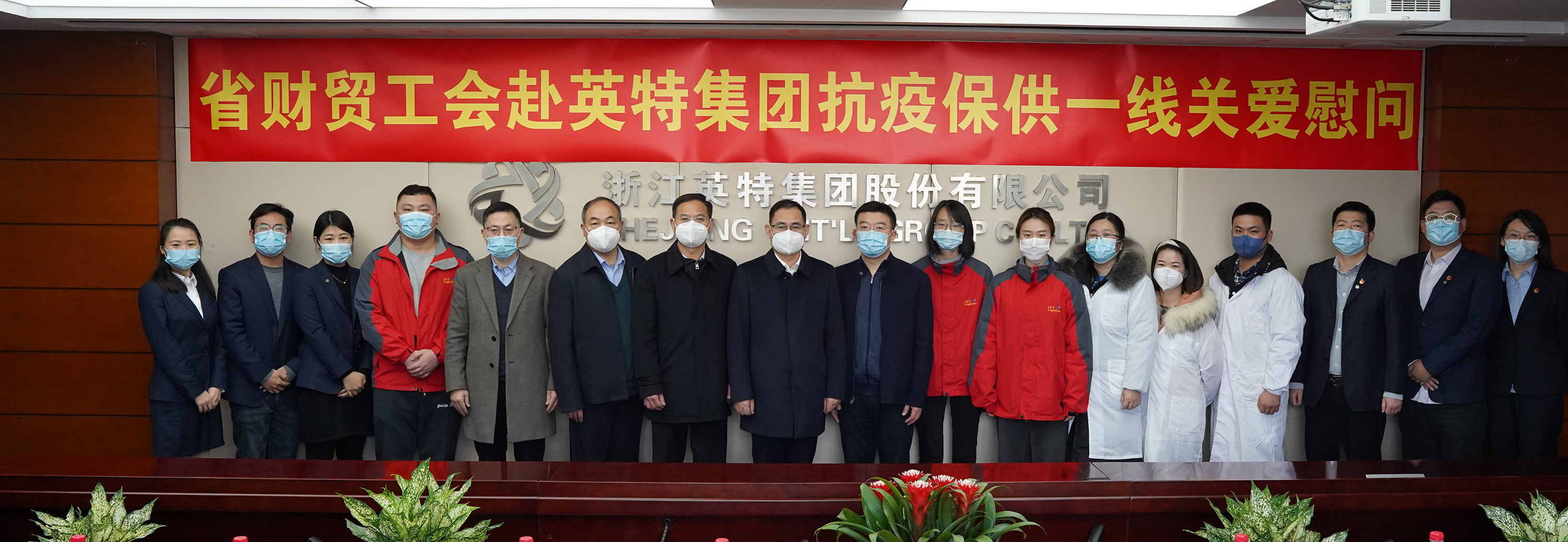 疫情當前,暖心慰問。1月6日上午,浙江省財貿工會主席許以平一行到省國貿集團下屬英特集團、康恩貝股份慰問堅守一線崗位的職工,并實地調研防疫產品生產保供工作。省國貿集團黨委副書記、董事鄭偉,工會辦公室人員陪同,英特集團黨委書記、董事長應徐頡,康恩貝股份黨委書記、副董事長應春曉及相關部門負責人隨行。